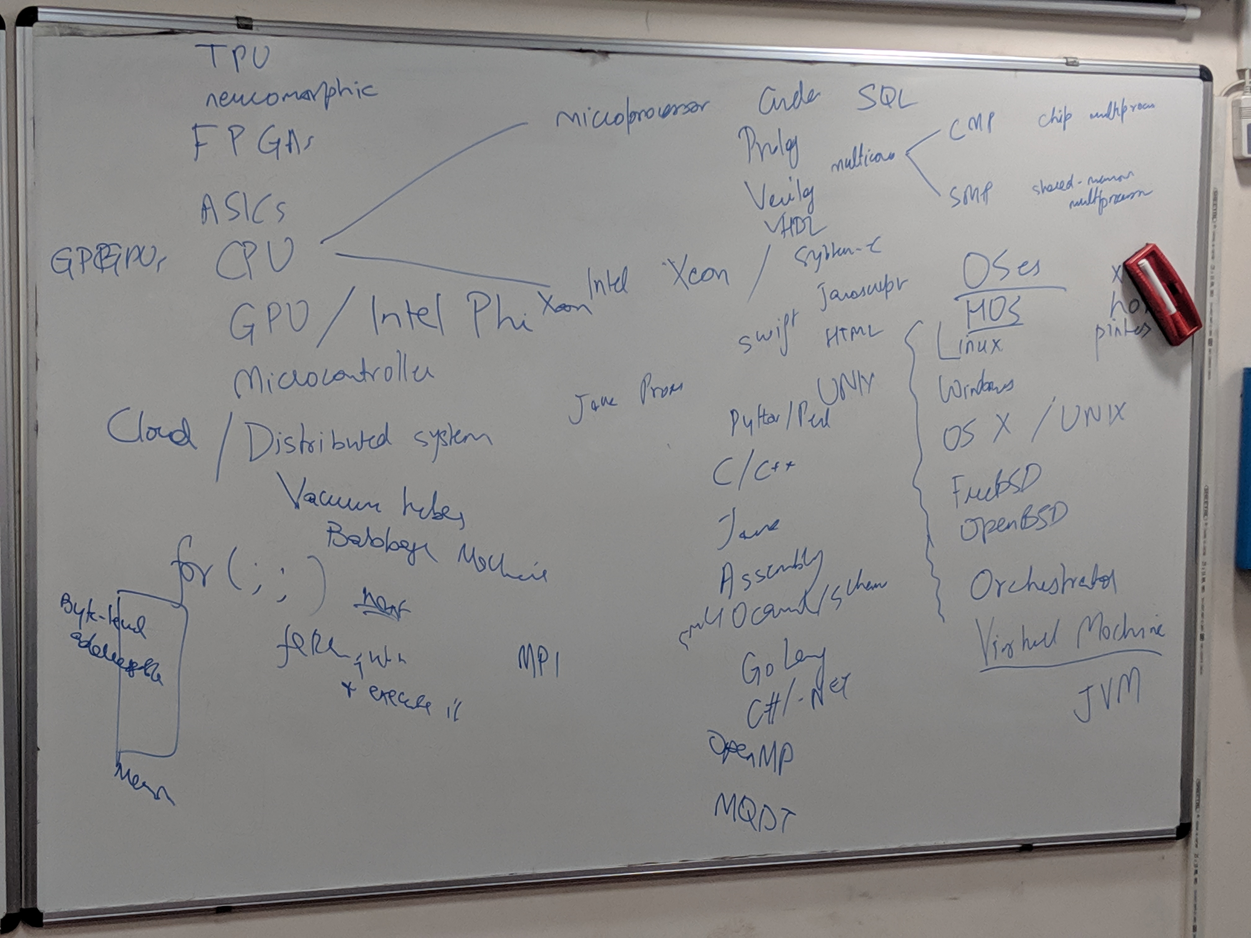 - Different types of computers? CPU, GPU, FPGA, ASIC, Microcontroller, Energy-harvesting devices, TPU, Babbage machine, supercomputer, mobile phone, Arduino, TI sensor nodes.